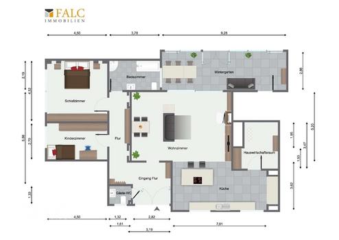 Vom Wohnzimmer aus haben Sie Zugang zum Wintergarten, der einen herrlichen Blick auf den gepflegten Garten bietet. Der Garten selbst ist ein Highlight der Immobilie und lädt zum Entspannen und Verweilen ein.