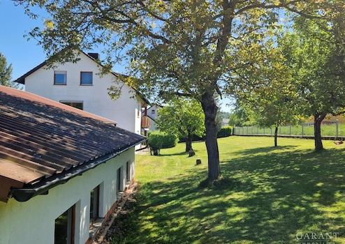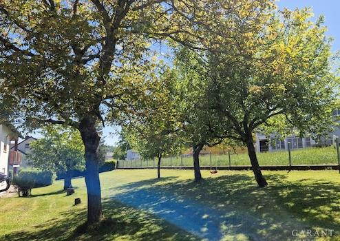 Das Haus umschließt ein großer Garten mit Obstbäumen, der der Erdgeschosswohnung zugeordnet ist und viel Platz zum Erholen und für Freizeitaktivitäten bietet.