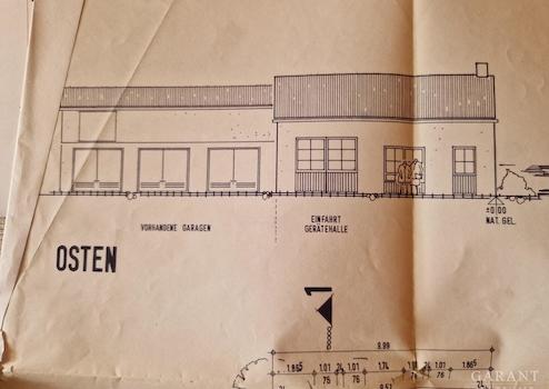 Objektzugehörig ist eine große Zusatzgarage/Gerätehalle, die optional gesondert vermietet werden kann z.B. als Stellplatz für Wohnmobile oder als kleine Werkstatt.