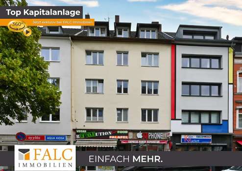 Die Immobilie befindet sich in begehrter Lage im Herzen von Köln-Ehrenfeld, einem der lebendigsten und vielfältigsten Stadtteile der Rheinmetropole. Die Venloer Straße zählt zu den bekanntesten und beliebtesten Einkaufs- und Flaniermeilen Kölns – gesäumt von trendigen Cafés, Restaurants, Boutiquen und allen Einrichtungen des täglichen Bedarfs.