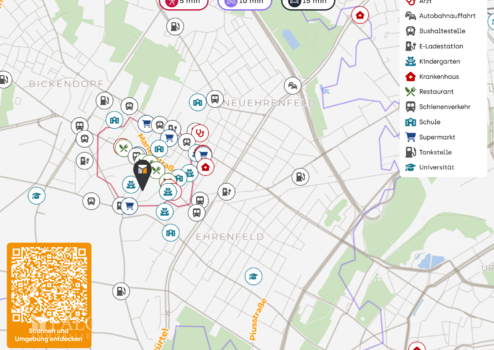 Die Immobilie befindet sich in begehrter Lage im Herzen von Köln-Ehrenfeld, einem der lebendigsten und vielfältigsten Stadtteile der Rheinmetropole. Die Venloer Straße zählt zu den bekanntesten und beliebtesten Einkaufs- und Flaniermeilen Kölns – gesäumt von trendigen Cafés, Restaurants, Boutiquen und allen Einrichtungen des täglichen Bedarfs.