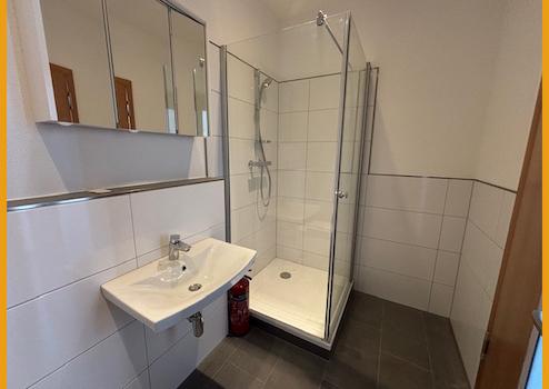 Die Erdgeschosswohnung bietet Ihnen rund 69m² und gliedert sich auf in einen kombinierten Wohn-/Schlafbereich mit offener Küche sowie ein helles Badezimmer mit Dusche. Des Weiteren finden Sie in der Wohnung einen Abstellraum und außerhalb der Wohnung ein separates Gäste-Bad mit Dusche. Direkt aus dem Wohnbereich gelangen Sie auf die Terrasse. Für Ihre PKW steht Ihnen ein Außenstellplatz zur Verfügung. Die Miete der Wohnung beläuft sich auf 700,-€ zzgl. 140,-€ Betriebskostenvorauszahlung. Das Objekt kann bei Bedarf auch als gesamtes Objekt gemietet werden.