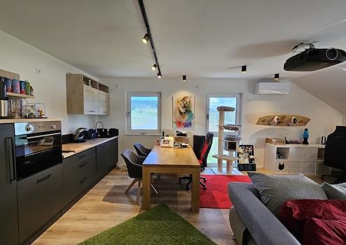 Im Wohn-Essbereich und der Küche wurden keine Kosten und Mühen gescheut, um ein gemütliches und gleichzeitig modernes Ambiente zu schaffen. Hier wartet ein Soundsystem auf Sie, das keine Wünsche offen lässt. Die Einbauküchen der beiden Wohnungen sind im Gesamtpreis inbegriffen.