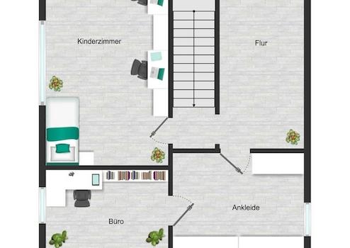 * Der Ausbau zu Wohnraum im Dachgeschoss-sowie im Anbau ist möglich