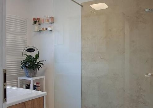 Auch der Boden des WC's wurde mit Naturstein belegt.