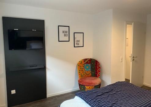 modernes Duschbad; 1 TV-Gerät im Wohn- und 1 TV-Gerät im Schlafzimmer;