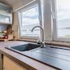 Küche mit L-förmiger Einbauküche, ausgestattet mit Geschirrspüler, Kühlschrank, Backofen (2023), Induktionskochfeld und Dunstabzugshaube