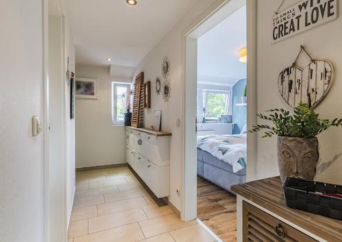 Was diese Immobilie wirklich einzigartig macht, ist die Möglichkeit der Doppelbewohnung. Im Erdgeschoss befindet sich eine eigenständige Einliegerwohnung mit Wohnzimmer, Schlafzimmer, Bad und Küche – ideal als Gästewohnung oder zur kleinen Vermietung. Die Haupthaus erstreckt sich über das erste und zweite Obergeschoss und bietet ein helles, geräumiges Wohnzimmer, eine moderne Küche, ein luxuriöses Badezimmer sowie insgesamt drei komfortable Schlafzimmer. Die durchdachte Aufteilung sorgt für Ruhe, Privatsphäre und Flexibilität im Alltag.