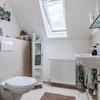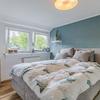 Schlafzimmer mit Laminatboden und zwei Dachfenstern