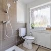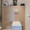 Modernisiertes Badezimmer mit Dusche, Waschtischunterschrank und WC