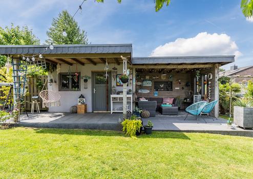 Gartenhaus mit Küchenzeile und Überdachung