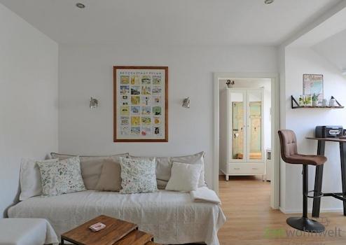 ### Please note the availability date! Bitte das Verfügbarkeitsdatum beachten! ### hübsches möbliertes Apartment im 3.Obergeschoss = Dachgeschoss, unweit zur Jenaer Innenstadt; helles Wohnzimmer mit Couch, Sesseln, ...