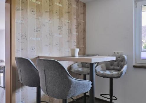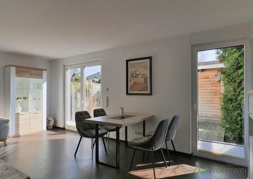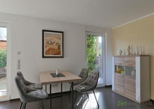 ### Please note the availability date! Bitte das Verfügbarkeitsdatum beachten! ### Erstbezug in neu möblierte Wohnung in einer ruhigen Wohnsiedlung; separater Hauseingang mit eigener Garage; großes Wohnzimmer mit Wohnlandschaft, TV, Sideboards und Esstisch; Ausgang zur großen sichtgeschützten Terrasse; separate Küche mit neuer EBK, hohem Esstisch und Speisekammer; Schlafzimmmer mit Doppelbett, Kleiderschrank und Couch; Bad mit bodentiefer Dusche, Waschtisch, WC und Waschmaschine; WLAN inklusive; Mindestmietdauer 2 Monate; Pauschalmiete 1.360,00 Euro (bei max. 2 Person), Kaution 1.800,00 Euro; Endreinigung 105,00 Euro; Pflichtangaben zum Energieausweis: Energieausweis liegt vermieterseits nicht vor, daher entfallen diese Angaben vorerst (§87, GEG)