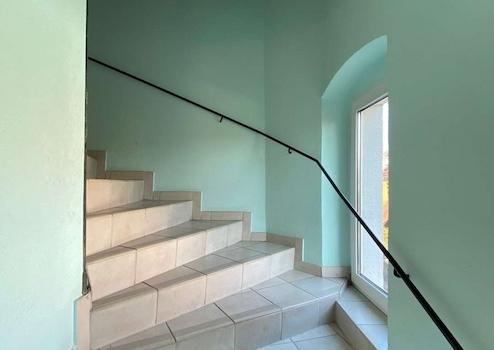 Im Dachgeschoss wurden zwei kleinere Wohnungen zu einer größeren Einheit zusammengelegt, wodurch ein besonders großzügiger Grundriss entstand. Ein zusätzliches Highlight ist der installierte Treppenlift, der den Zugang erleichtert und somit einen barrierearmen Wohnkomfort bietet.