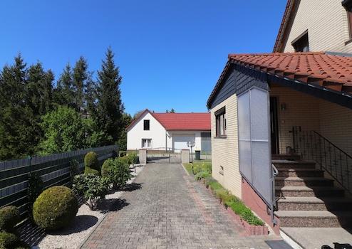 Wir bieten Ihnen im Neuhausener Ortsteil Groß Döbbern ein Grundstück von knapp 1.000 m², bebaut mit einer Doppelhaushälfe, einer Doppelgarage und einer Werkstatt.