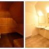 Dit is weer een luxe.... een badkamer met een sauna. Ook heeft deze badkamer een douche en 2 wasbakken.