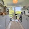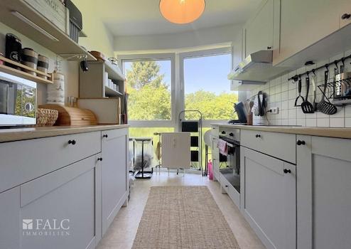 Geht man den Flur weiter entlang, befinden sich auf der rechten Seite ein weiteres Schlafzimmer sowie die separate Küche. Die Küche ist klassisch geschnitten, bietet ausreichend Platz für alle notwendigen Küchengeräte und ist durch die geschlossene Bauweise angenehm vom Wohnbereich getrennt.