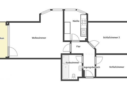 Beim Betreten der Wohnung gelangen Sie zunächst in den zentral gelegenen Flur, der Ihnen Zugang zu allen Räumen bietet. Direkt auf der linken Seite befindet sich das Badezimmer, welches mit einer Badewanne und einer Dusche ausgestattet ist – funktional und praktisch gestaltet. Auf der rechten Seite des Eingangs liegt das erste Schlafzimmer, welches derzeit als Kinderzimmer genutzt wird.