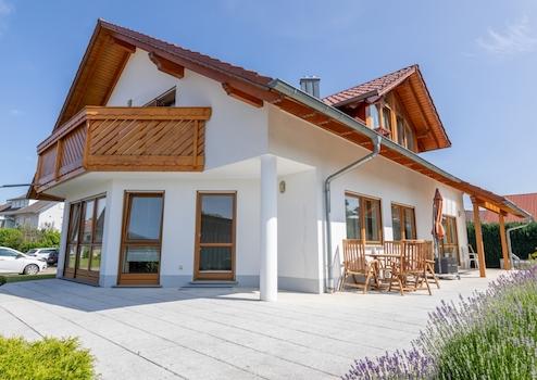 Draußen erwartet Sie ein wunderschönes, mit viel Sorgfalt gepflegtes Gartengrundstück mit weitläufigen Terrassenbereichen, die direkten Zugang von beiden Wohneinheiten bieten. Hier können Sie gemeinsam lachen, feiern oder einfach die Sonne und die Idylle des Landlebens genießen.