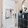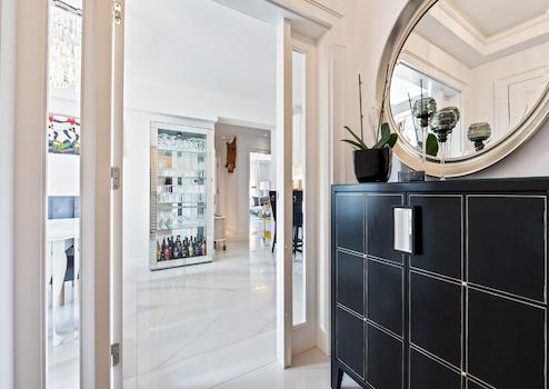 • einladender, heller Flur, helle Bodenfliesen im Großformat