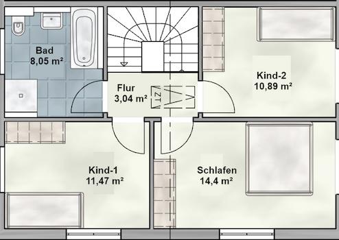 Die Doppelhaushälfte verfügt über insgesamt 2 Etagen (EG + OG) und einen Keller. Es wird mit einem Satteldach erbaut. Im Erdgeschoß befinden sich der große Wohn- Essbereich, ein Büro/Gästezimmer, die Küche, der Flur und ein WC. Im Obergeschoß sind 3 Schlafzimmer und ein großes Bad. Im Keller befinden sich 2 Kellerräume und ein Hauswirtschaftsraum. Die genaue Aufteilung ist noch genau bestimm- und variierbar. Das Haus ist hochwertig ausgestattet und mit allen wichtigen Details ausgestattet. Zu diesen gehören z.B.: