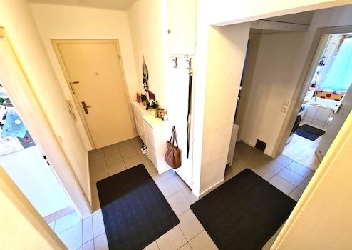 Sie parken Ihr Auto auf den Parkplätzen am Haus, gehen ins 3. OG, öffnen die Wohnungstür und befinden sich im zentralen Flur. Hier hat man hinreichend Platz für seine Garderobe.