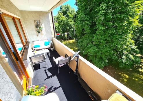 # schöner großer Süd-Ost-Seiten-Balkon mit 2 Zugängen (Wohnzimmer und Küche)