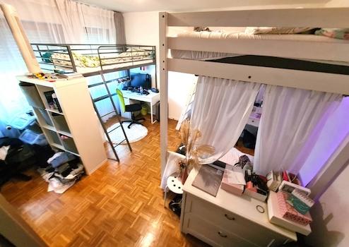Über den zentralen Flur gelangen Sie in den Schlafbereich der Wohnung. Rechts ein ca. 16 m² großes Schlafzimmer und gegenüber der Elternbereich mit ca. 12,5 m² Wohnfläche.