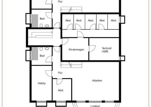 Die Hobby und Arbeitsräume sind ausgestattet wie die Wohnungen im Erd- und Dachgeschoss.