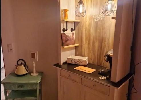 Stilvolles Esszimmer mit integrierter Café-Bar - ideal für gemeinsame Mahlzeiten oder als Homeoffice-Arbeitsplatz, inkl. Tassen und Gläser