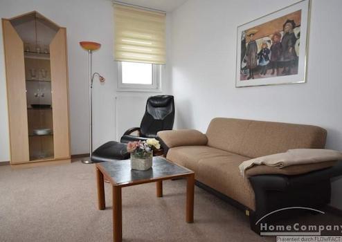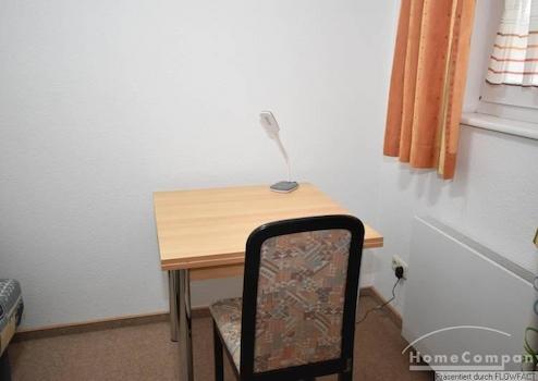 Im Badezimmer mit Fenster befindet sich eine Dusche und eine Waschmaschine. Außerdem gibt es ein helles Arbeitszimmer mit einem funktionalen Arbeitsplatz und einer Gästecouch. Ein Stellplatz für das eigene Auto komplettiert das Wohnangebot. Auf Wunsch kann auch ein monatlicher oder auch 14 tägiger Reinigungsservice zugebucht werden.