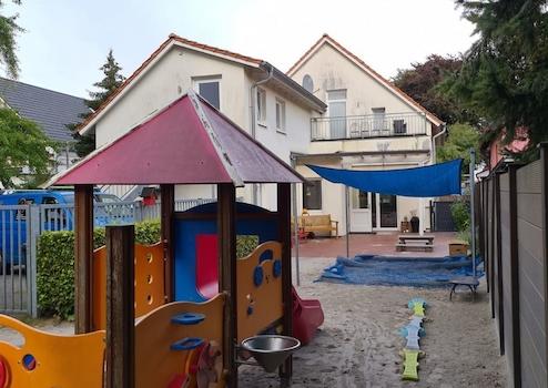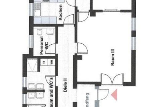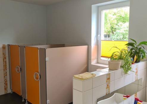 Die Räumlichkeiten der Kinderkrippe umfassen das gesamte Erdgeschoss sowie im Dachgeschoss ein schönes Zimmer, ferner WC und Abstellbereich. Insgesamt verteilen sich ca. 178,45 m² auf 5 Räume, Küche, Garderoben und Flurbereich, Waschraum mit Toiletten und 2 x Personal-WCs.