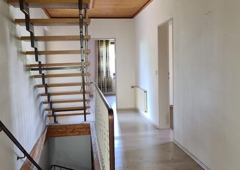 Flur mit Terrassenzugang sowie Treppenabgang ins Kellergeschoss und Treppenaufgang ins Dachgeschoss (nicht ausgebauter Bodenraum)