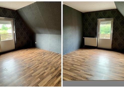 Im Erdgeschoss befindet sich ein großzügiger Wohn- und Essbereich, der durch einen Anbau zusätzlich an Raum gewinnt. Ein separates Zimmer auf dieser Etage eignet sich ideal als Büro, Gästezimmer oder Rückzugsort. Die Küche ist derzeit ohne Einbauküche ausgestattet, kann jedoch durch das angrenzende Vorzimmer zu einer geräumigen Wohnküche verbunden werden. Zudem befinden sich im Erdgeschoss ein Gäste-WC sowie ein zentraler Hausflur mit Zugang zu allen Räumen und dem Teil-Keller.