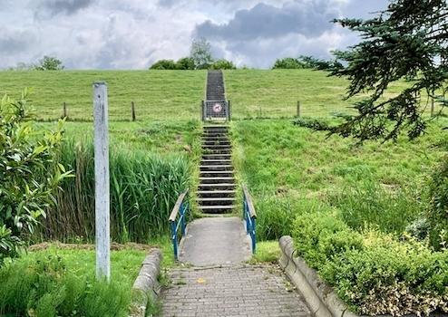 die ruhige Anlieger Straße (Sackgasse) bietet direkten Zugang über den Deich zur Weser.