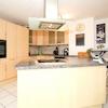 Die moderne Küchenzeile in U-Form lockt mit ausreichend Stauraum in warmer Holzoptik, einem Einbaukühlschrank, einer Spülmaschine, einem Backofen auf Körperhöhe und einem edlen Induktionskochfeld mit passendem Dunstabzug. Dies lässt das Koch- und Backherz höher schlagen und verbleibt in der Immobilie. Eine kleine Theke sorgt für Kommunikation mit der Familie, während Sie Ihren Lieben einen Snack zaubern.