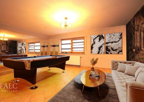 Lange Kuschelstunden mit der oder dem Liebsten am Kachelofen oder feuchtfröhliche Spieleabende mit Freunden, der große, gemütliche Wohnzimmerbereich besticht zusätzlich mit Zugang zum Wintergarten, verlegen Sie den Sonntagsbrunch doch einfach mal windgeschützt hierher.