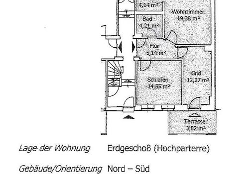 Im Kundenauftrag verkaufen wir ein vermiete 63,61 qm große 3-Raum Wohnung mit Terrasse im nördlichen Rand des Zentrums der Skatstadt Altenburg.
