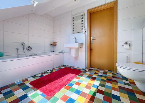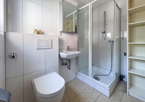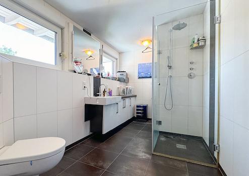 Wohneinheit 4 im Obergeschoss, Dachgeschoss und Kellergeschoss (74 m²): Wohn- und Esszimmer mit offener Küche, Schlafzimmer mit Ankleide und Bad I (mit Wanne, Waschtisch und WC), Bad II (mit Dusche, Waschtisch und WC), Gäste-Bad (mit WC, Dusche und Waschtisch), Hobbyraum