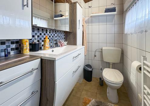 Wohneinheit 1 im Erdgeschoss (ca. 57 m²): Wohn- und Esszimmer, Schlafzimmer, Küche, Diele, Bad (mit Dusche, Waschtisch und WC), Hauswirtschaftsraum