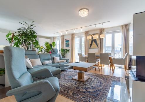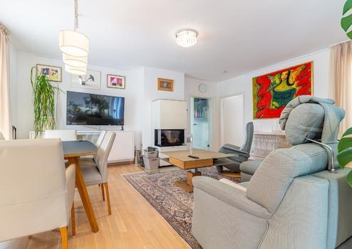 Die Wohnung ist komplett möbliert mit maßgefertigter Küche, Möbeln und Schränken, offenem Kamin, Perserteppich, echter Kunst an den Wänden, Villeroy und Boch Küchengeschirr, christlichen Gläsern, allen möglichen kleinen Küchengeräten, verstellbarem Designer-Sofa und TV-Stuhl, verstellbar Designer-Kaffeetisch, Designer-Esstischstühle aus echtem Leder, erwachsene Zimmerplanzen, reichlich Bettwäsche und Handtücher aus Baumwolle, automatische Bewässerungsanlage für Pflanzen auf dem Balkon, Waschmaschine und Trockner, 2 Flachbildfernseher mit Satellit und ein weiteres Abonnement-Programm mit ausländischen Sendern, Apple TV, schnelles WLAN usw.
