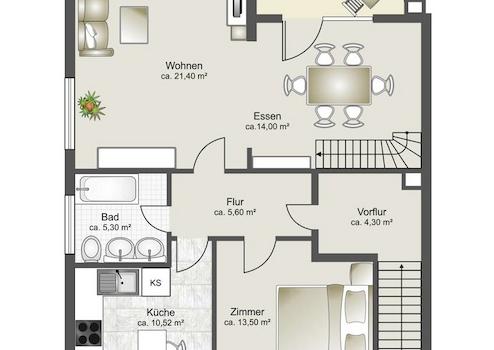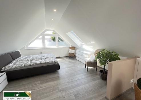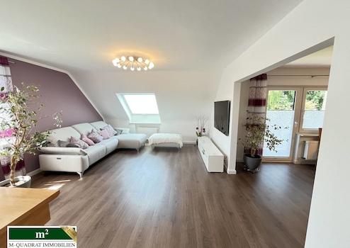 Bevor sie die Dachgeschosswohnung betreten, empfängt sie ein offener Vorflur. Hier können Jacken und Schuhe ihren Platz finden. Auf dieser Etage befindet sich ein Zimmer, eine individuell gestaltete „Nobilia“ Küche, ein älteres Wannenduschbad sowie ein großzügiges, einladendes und helles Wohnzimmer, das offen zum Esszimmer ist. Für diese Bereiche wurden „Shelly-Schalter“ installiert. Diese ermöglichen eine Schaltung und Steuerung des Lichts und der Außenrollläden vorm Balkon, über eine APP. Vom Esszimmer aus kommen sie auf den ca. 5 m² großen West-Balkon, der 2020 saniert wurde. Eine neuwertige Treppe führt sie in den ausgebauten Spitzboden mit eigenem, modernem Duschbad. Im Zuge des Ausbaus wurde die Dachdämmung mit 160er Dämmung verstärkt.