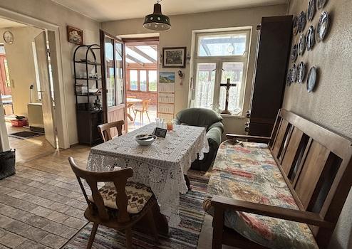 Dieses historische Objekt verfügt über drei autarke Wohneinheiten, einen großzügigen Naturbereich, eine Scheune, einen großen Wintergarten, ein Stallgebäude und einen Carport. Das Objekt bedarf einer umfangreichen Sanierung um heutigen Ausstattungsstandards und Anforderungen gerecht zu werden. Dazu müssten u.a. die restlichen Renovierungsarbeiten an einem, im Jahre 2024 aufgetretenen Wasserschaden im EG und teilweise auch im OG durchgeführt werden und die Nachtspeicherheizung sollte durch eine neue Heizanlage ersetzt werden. Der beschriebene Wasserschaden ist zum größten Teil schon beseitigt. Davon betroffene Stellen im Bereich der Decke des EG und im Mauerbereich wurden entfernt bzw. getrocknet.