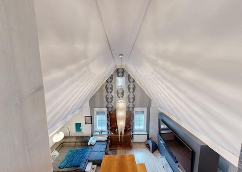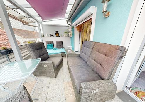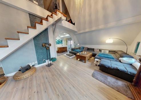 Über die Treppe gelangen Sie in den geräumigen Flur, die Küche mit Esszimmer und das Wohnzimmer welches bis unter das Dach geöffnet ist. Eine kleine Galerie in der Dachspitze bietet Ihnen einen gemütlichen Rückzugsort. Der Balkon ist überdacht, somit kann man auch bei Regentagen draußen sitzen.