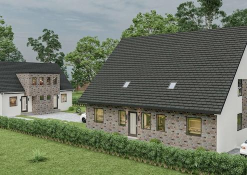 Der rund 34 m² große Wohnbereich besticht durch seine Helligkeit und Großzügigkeit und vereint Wohnen, Essen und Kochen in einem offenen Konzept. Ein Schlafzimmer und das Bad mit Fenster runden das Erdgeschoss ab. Vom Wohnbereich aus gelangen Sie direkt auf die eigene Terrasse. Das rund 400 m² große Grundstück bietet jede Menge Raum für Kinder und Erholung im Grünen.