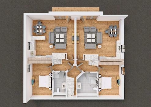 Die visualisierten Grundrisse dienen nur der besseren Darstellung der Räume, kleine Abweichungen sind daher möglich.