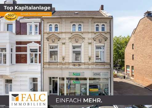 Dieses Wohn- und Geschäftshaus in gefragter Lage der Bergisch Gladbacher Innenstadt bietet Kapitalanlegern eine attraktive Kombination aus laufenden Mieteinnahmen und zusätzlichem Entwicklungspotenzial. Die 1910 errichtete Immobilie umfasst drei Gewerbeeinheiten (UG, EG, OG) sowie zwei moderne 2-Zimmer-Wohnungen im Dachgeschoss – auf insgesamt ca. 356 m² vermietbarer Fläche (davon ca. 74 m² Wohnen, ca. 282 m² Gewerbe).