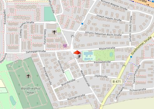 Bus 241 Haltestelle "Freibadstraße" in 5 Gehminuten erreichbar, von dort in 5 Minuten mit dem Bus beim Bahnhof Haar mit S4 und S6 Haltestelle, somit ist man in ca. 15-20 Minuten in der Münchner Innenstadt;