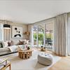 Das lichtdurchflutete Wohnzimmer ist geöffnet zum Küchen- und Essbereich. Dieser ist mit einer hochwertigen Einbauküche mit Natursteinarbeitsplatte, flach bündigem Induktionskochfeld, Kopffrei-Dunstabzugshaube, Spülmaschine, integriertem Kaffeevollautomaten (alle Siemens) und einem doppeltürigen Kühlschrank ausgestattet. Im Wohnbereich kann mit dem Kaminofen eine behagliche Wärme erzeugt werden.