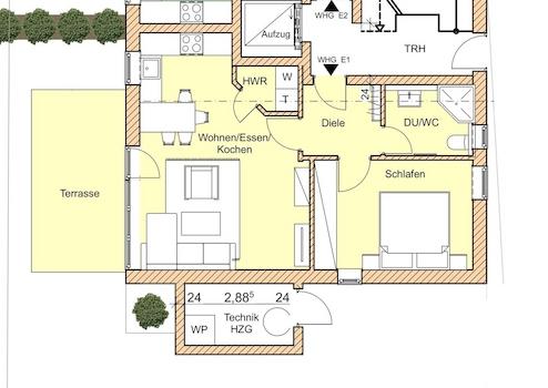 Wohnfläche: 52,15 m² (Terrasse anteilig eingerechnet)